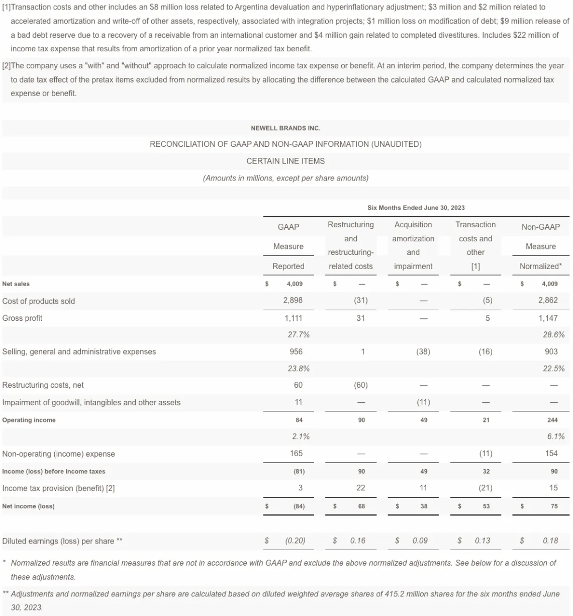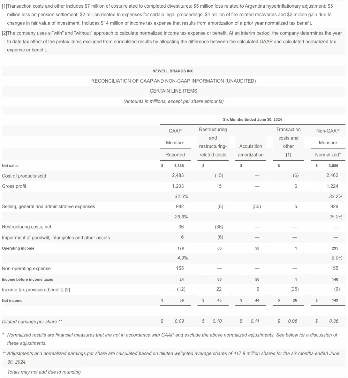 Chris Peterson, Newell Brands President and Chief Executive Officer, said, "We are making significant progress in driving Newell's turnaround. During the second quarter, we continued to deliver on our operational and financial priorities for the year, as results came in at the high-end or ahead of our plan across key metrics. Since implementing the new corporate strategy, we have taken decisive actions that have improved the company's top line trajectory, driven significant gross and operating margin expansion, delevered the balance sheet and improved cash flow performance, while strengthening our team, Newell's front-end commercial capabilities and fostering a high-performance, high-accountability culture. We remain laser focused on returning the business to sustainable and profitable growth and are confident that we are pursuing the right strategy to accomplish this."