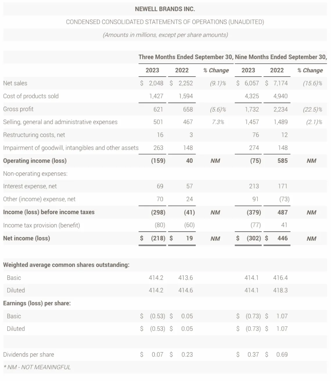 ATLANTA--(BUSINESS WIRE)--Oct. 27, 2023-- Newell Brands (NASDAQ: NWL) today announced its third quarter 2023 financial results.