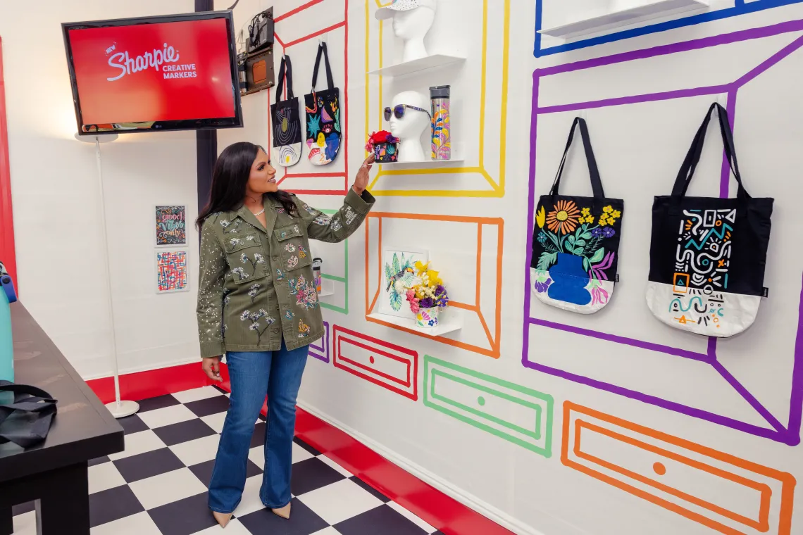 The Studio housed the Sharpie Creative Closet, where guests could decorate Bubba® water bottles, tote bags, hats and sunglasses using the new Sharpie Creative Marker. In the Paper Mate Joy Lounge, they could write a custom postcard to their friends and families using the Paper Mate InkJoy Gel Bright Pen. At the Creative Cocktail Bar, attendees were invited to draw their dream cocktail or mocktail, and bartenders brought their vision to life. The Studio’s backyard hosted several interactive workshops, such as creativity-themed physical and mental workouts, a doodle analysis and a private Q&A with celebrity spokesperson Mindy Kaling, who will appear on Good Morning America in April to discuss the partnership and products.