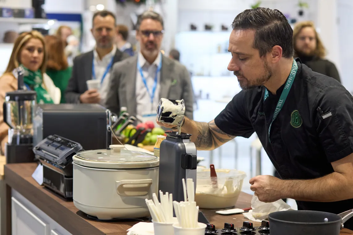 The focal point of the booth was the fully functioning kitchen and coffee bar, where Atlanta, GA-based Chef Austin Rocconi provided cooking demonstrations using Newell Brands products. From Calphalon® knives and pans to Rubbermaid food storage containers, Chef Rocconi showcased how Newell Brands products can be used in every step of the food preparation process.